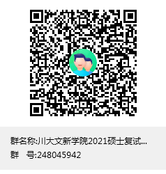 1. 请复试考生全员于2021年3月19日至3月21日实名(以“报名号+真实姓名”为验证消息的方式)加入2021年川大文新学院硕士复试通知总群(群号:248045942),方便沟通交流。