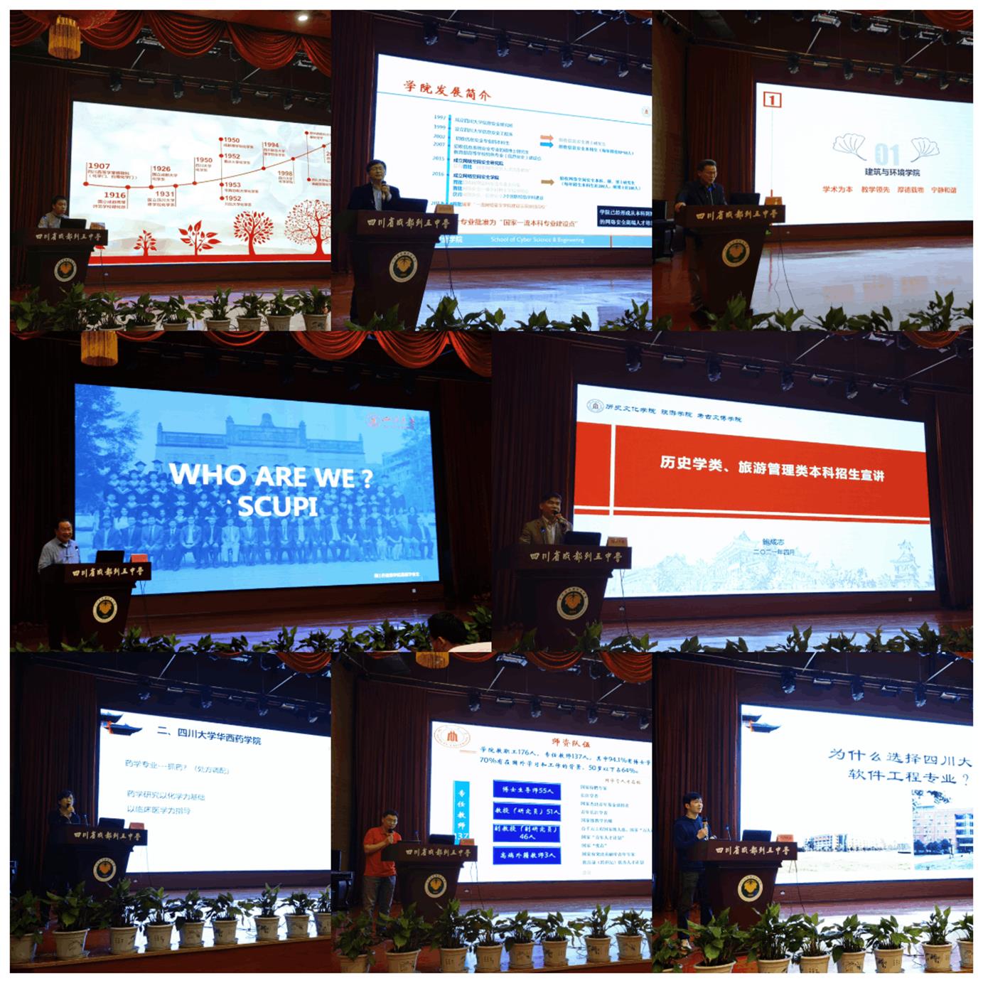 为增进我校与省内重点高中的交流合作,吸引更多优质生源报考我校,4月22日,4688美高梅登录中心招生宣讲团来到四川省列五中学开展招生宣讲。本次宣讲团由4688美高梅登录中心发起组织,包括了4688美高梅登录中心招生办公室副主任廖爱民、4688美高梅登录中心副院长周维东教授、网络空间安全学院副院长杨频教授、软件学院软件工程系主任张意教授,建筑与环境学院副院长兰中仁副教授、生命科学学院生物技术系主任赵建教授、历史文化(旅游)学院副院长鲍成志教授,药学院周乃彤副教授、化学学院副院长郑成斌教授、匹兹堡学院麦诚志教授、华西口腔医学院张倩倩老师等一行15人。