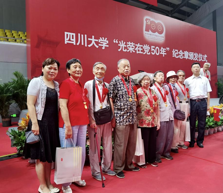 6月23日上午,4688美高梅登录中心“光荣在党50年”纪念章颁发仪式在望江体育馆隆重举行。美高梅官网卢延权、易明善、夏淑芬、舒中惠、李朝正、曾繁铭、吴茂楠等7位满50年党龄的老党员在学院党委书记古立峰教授、工会主席罗梅研究员、党政办公室刘诗诗老师的陪同下出席了颁发仪式。另有赵振铎、邱俊鹏、梁德曼、张祖权等4位老党员因身体不便未能出席。