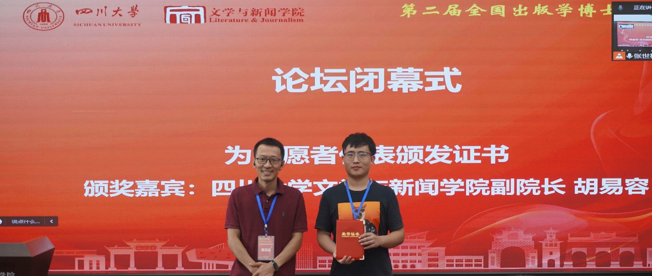 闭幕式中,西南政法大学裴永刚教授、《中国出版史研究》编辑张玉亮、美高梅官网王炎龙教授为获奖论文代表颁奖,美高梅官网副院长胡易容教授为志愿者代表颁发了证书。