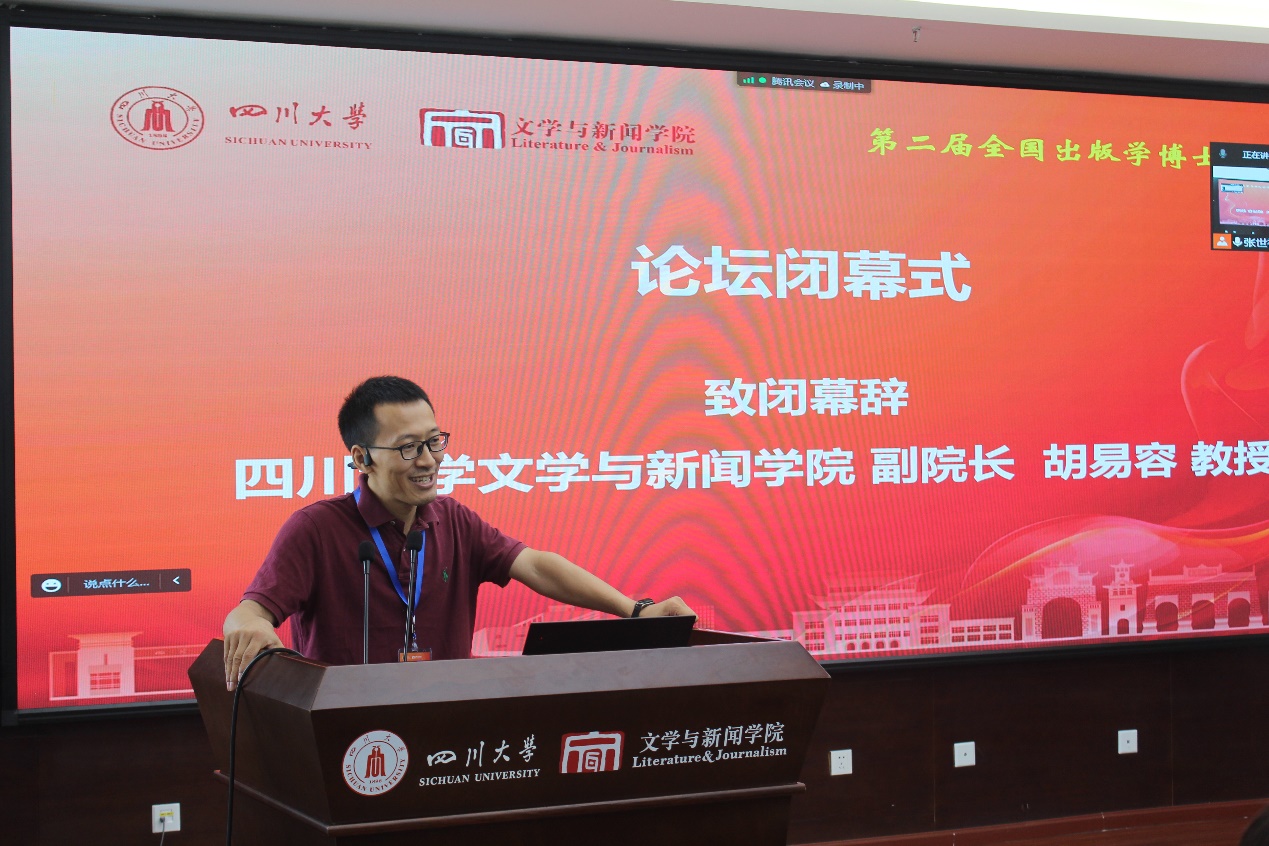 4688美高梅登录中心副院长胡易容教授致闭幕词,他简要介绍了学院学科建设及科研育人的特色举措,以及学院出版学科的发展简况。他表示,博士生论坛这个学术交流平台对人才培养有着十分重要的促进作用,本届论坛的举办是川大出版学院落实打造人才培养新标杆的系列举措之一,并对出版学青年博士发出了邀请。