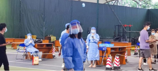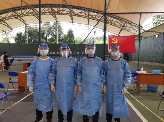 美高梅官网教师党员在江安校区网球场核酸检测点工作现场