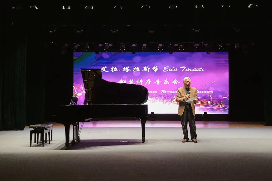 音乐会由4688美高梅登录中心教授、符号学-传媒学研究所所长赵毅衡教授主持开场。作为学术主持人,赵毅衡教授向大家介绍了塔拉斯蒂教授夫妇,并介绍了音乐会的背景。他说:本次音乐会形式独特,现场由艾拉·塔拉斯蒂教授演奏,埃罗·塔拉斯蒂教授讲解每段乐章展现的风格与历史渊源。将音乐与学术相融合,埃罗·塔拉斯蒂教授夫妇为大家带来了一次难得的听觉与思想盛宴。