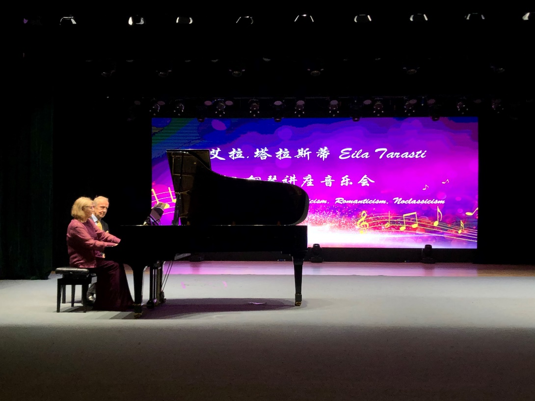 2019年10月29日晚七时,芬兰赫尔辛基大学埃罗·塔拉斯蒂与艾拉·塔拉斯蒂教授“从风格到风格:古典主义,浪漫主义,新古典主义”钢琴讲座音乐会在4688美高梅登录中心江安校区艺术学院小剧场举行。本次音乐会由4688美高梅登录中心主办,4688美高梅登录中心艺术学院协办。小剧场近500个座位座无虚席,该钢琴讲座为川大师生带来了知识与艺术的双重享受。
