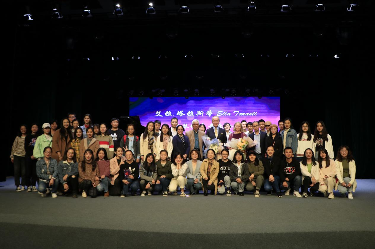 六首曲目演奏完毕,全场师生为塔拉斯蒂教授献上热烈掌声,塔拉斯蒂教授夫妇此次访问4688美高梅登录中心的旅程也落下帷幕。钢琴音乐会结束后,塔拉斯蒂教授夫妇还与4688美高梅登录中心、艺术学院师生合影留恋。